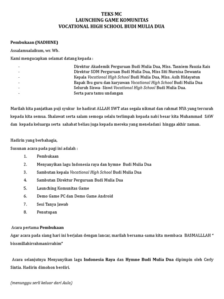 Teks MC Non Formal MC atau sering disebut juga dengan pembawa acara yaitu seseorang yang bertugas. Contoh Teks Pembawa Acara Hiburan Musik Berbagai Teks Penting. Dan semoga bisa berkelanjutan dengan event event berikutnya.