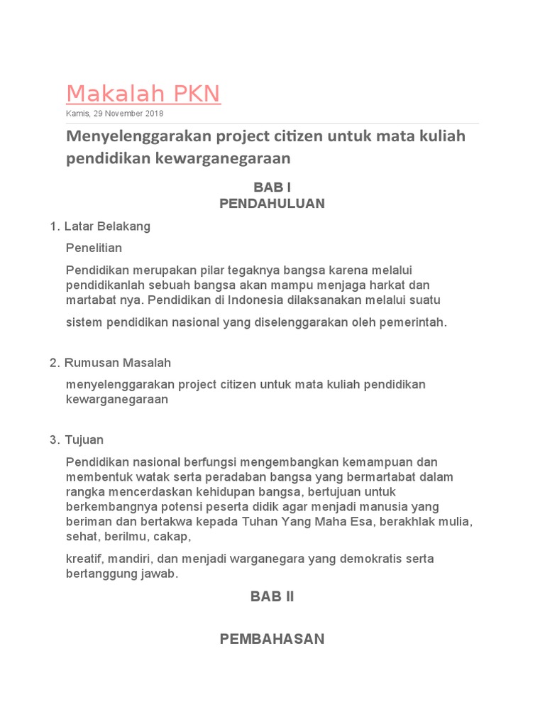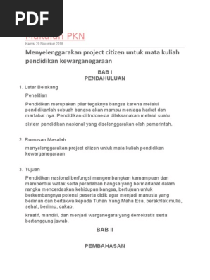 Makalah Pkn Menyelenggarakan Project Citizen Untuk Mata Kuliah Pendidikan Kewarganegaraan