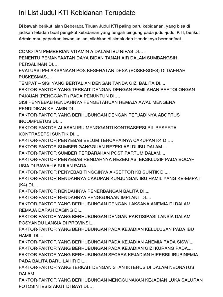 Doc Kumpulan Judul Kti Dan Skripsi Kebidanan Mufida Hakim Academia Edu