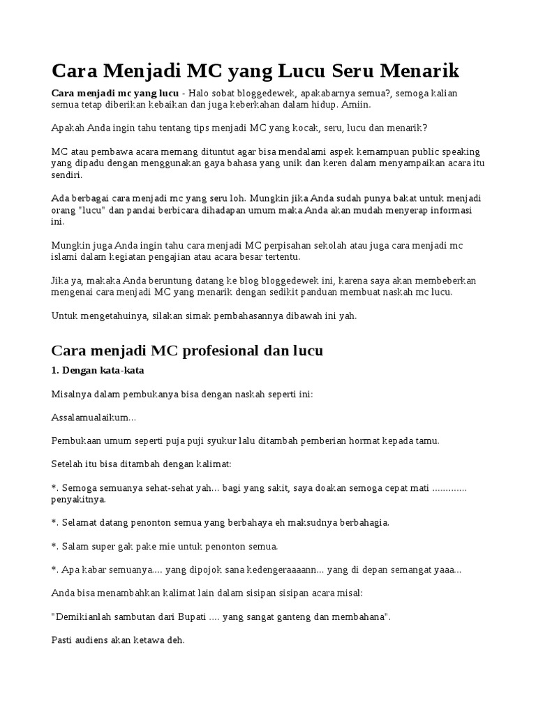 Contoh Teks Mc Non Formal Lucu Terkait Teks