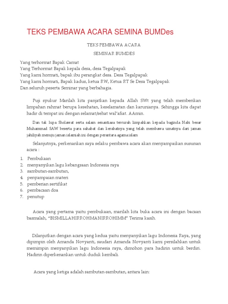 Kumpulan Teks Mc Pembawa Acara Rapat 7 Contoh Terbaik Makalah Pedia