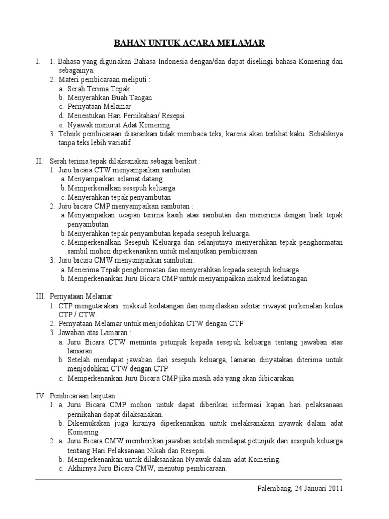Contoh Teks Naskah Pidato Kata Sambutan Pihak Wanita Acara Khitbah Lamaran 2 Yang Terhormat Bpk. Pidato Melamar Calon Pengantin Putri adalah contoh teksnaskah Pidato Pernikahan menggunakan Bahasa Indonesia. Teks Pembawa Acara Mc Resepsi Pernikahan Bahasa Sunda Otosection.