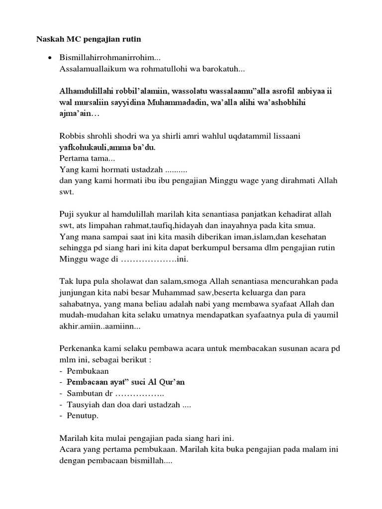 Contoh Teks Mc Pada Acara Pengajian Rutin Youtube