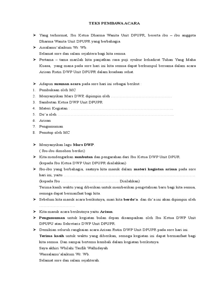 Contoh Teks Pembawa Acara Arisan Dharma Wanita Kumpulan Contoh Teks Mc