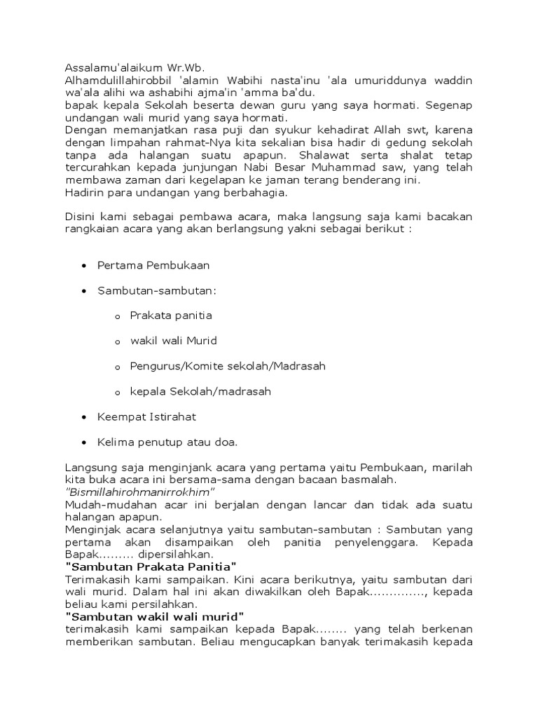 Contoh Mc Pada Acara Pertemuan Wali Murid Pdf Document