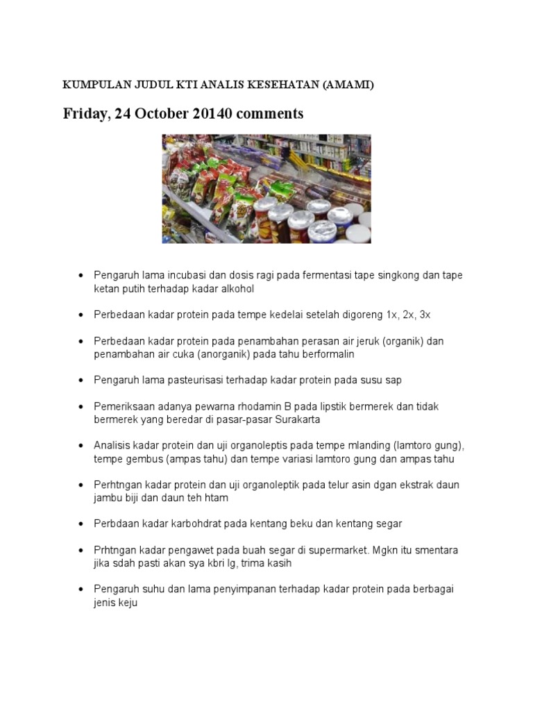 Boraks dan Formalin pada Makanan. DODIT DWI S KTI MIKOLOGI Judul Proposal Analis Kesehatan Lukisan Formulir5 stikes analis_kesehatan_diii Judul Skripsi Analis Kesehatan Bidang Kimia Klinik – Kumpulan. Farmasi klinik merupakan ilmu kefarmasian yang relatif baru berkembang di indonesia.
