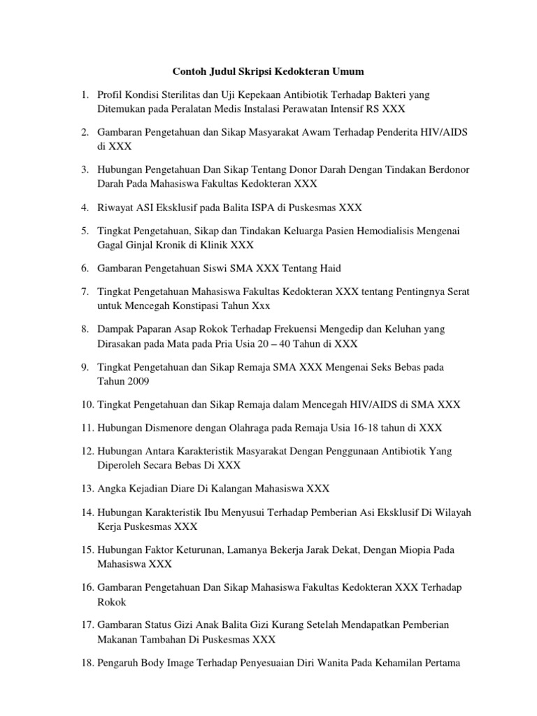 Contoh Skripsi Kedokteran Ide Judul Skripsi Universitas