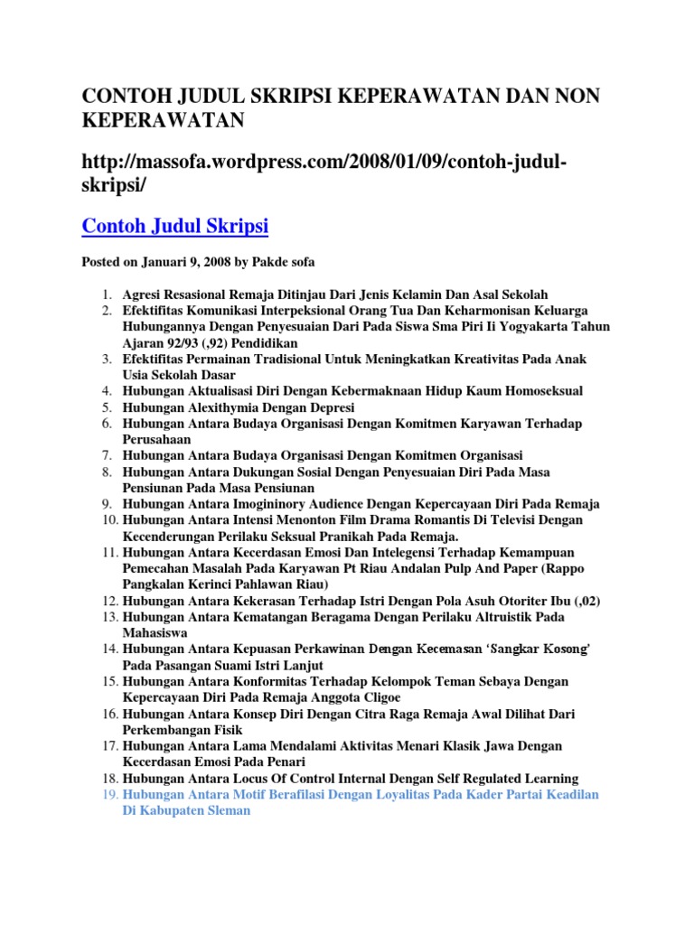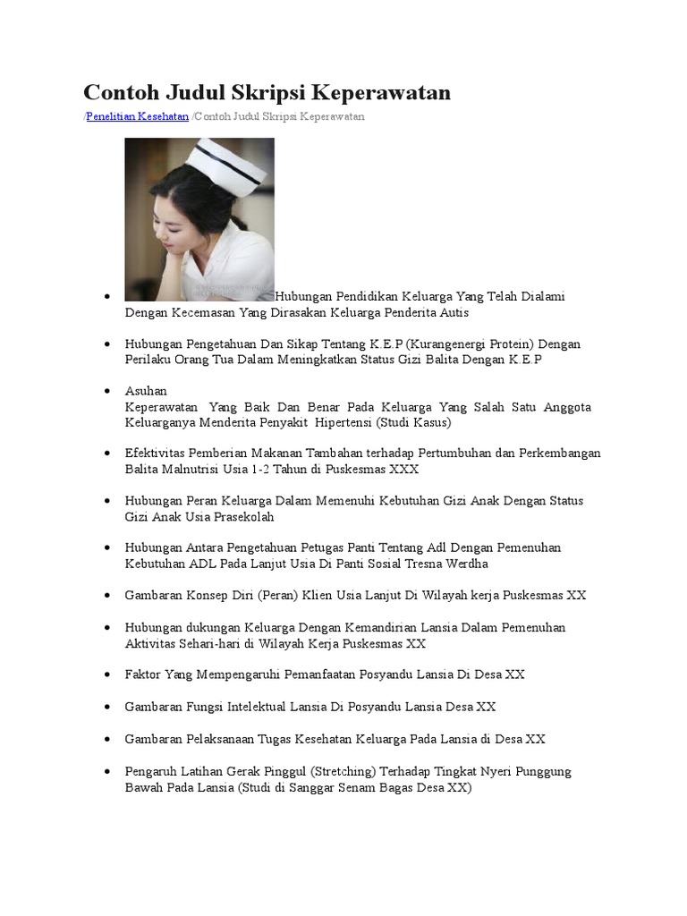 Contoh Judul Skripsi Keperawatan Dan Non Keperawatan