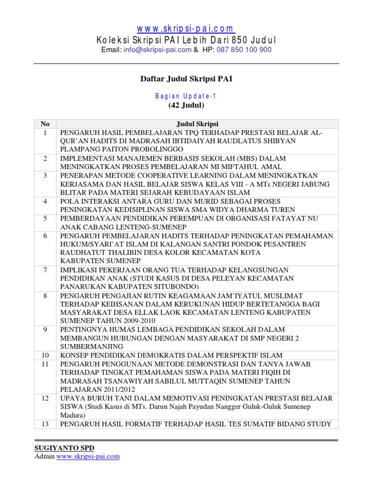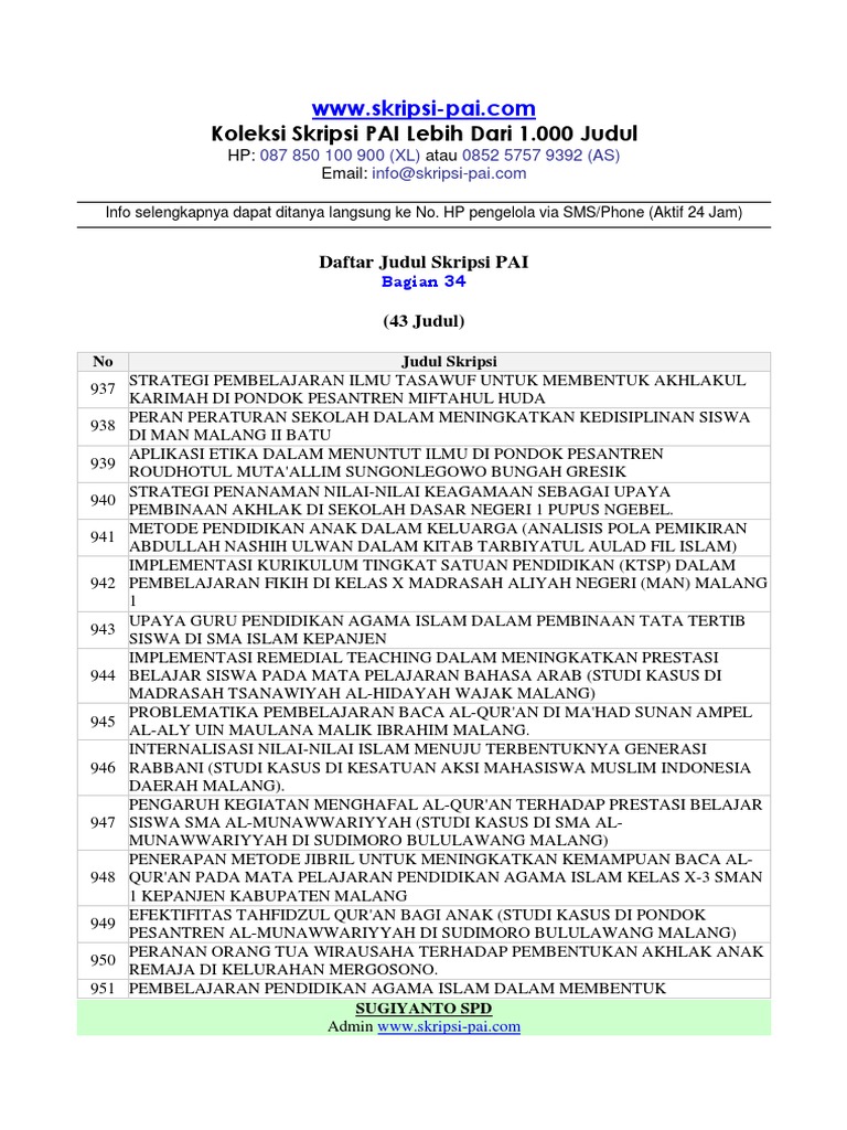 20 Contoh Judul Skripsi Pai Pendidikan Agama Islam Terbaru Dan Lengkap Seputarpembahasan Com
