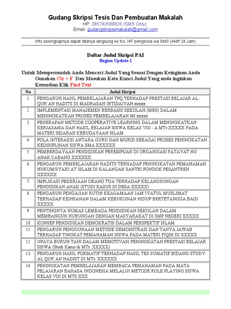 Daftar Judul Skripsi Pai Bagian Update 1