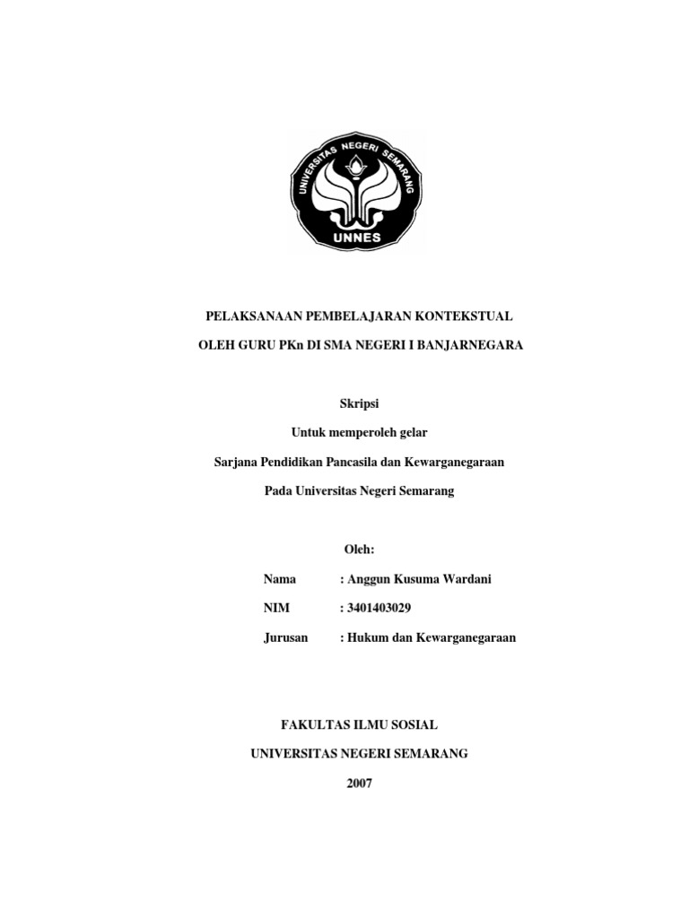 Contoh Skripsi Lengkap PKn SD Peranan Museum Ranggawarsita. Maka dari itu sebelum menyusun skripsi mencari informasi mengenai Contoh Judul Skripsi Pendidikan sangat. Upaya Rumah Pintar Bang Jo Pkbi Jawa Tengah Dalam Penanaman Kemandirian Anak Di.
