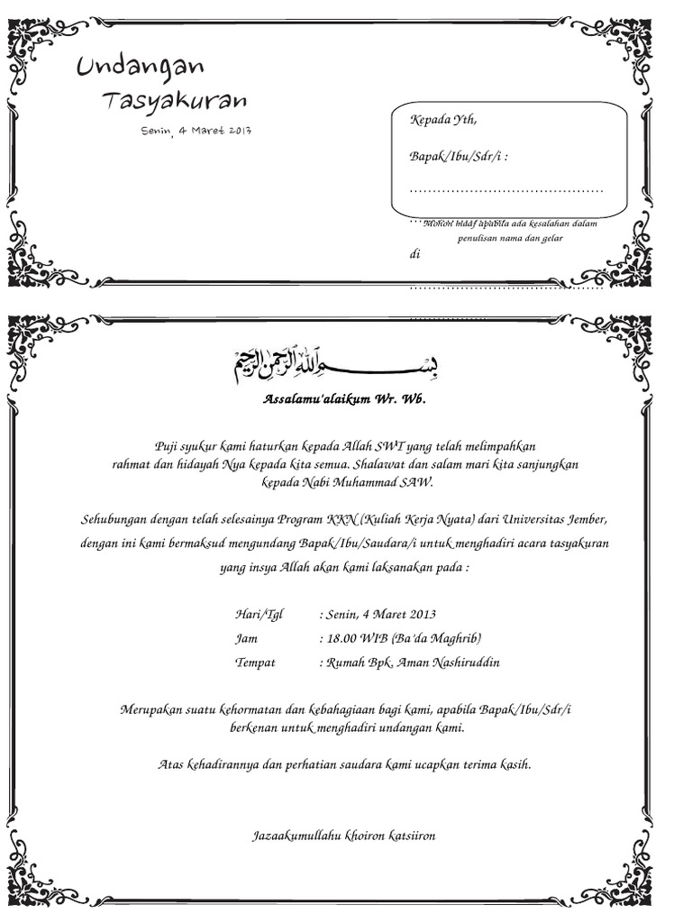 Contoh Surat Undangan Syukuran Rumah Baru | PDF