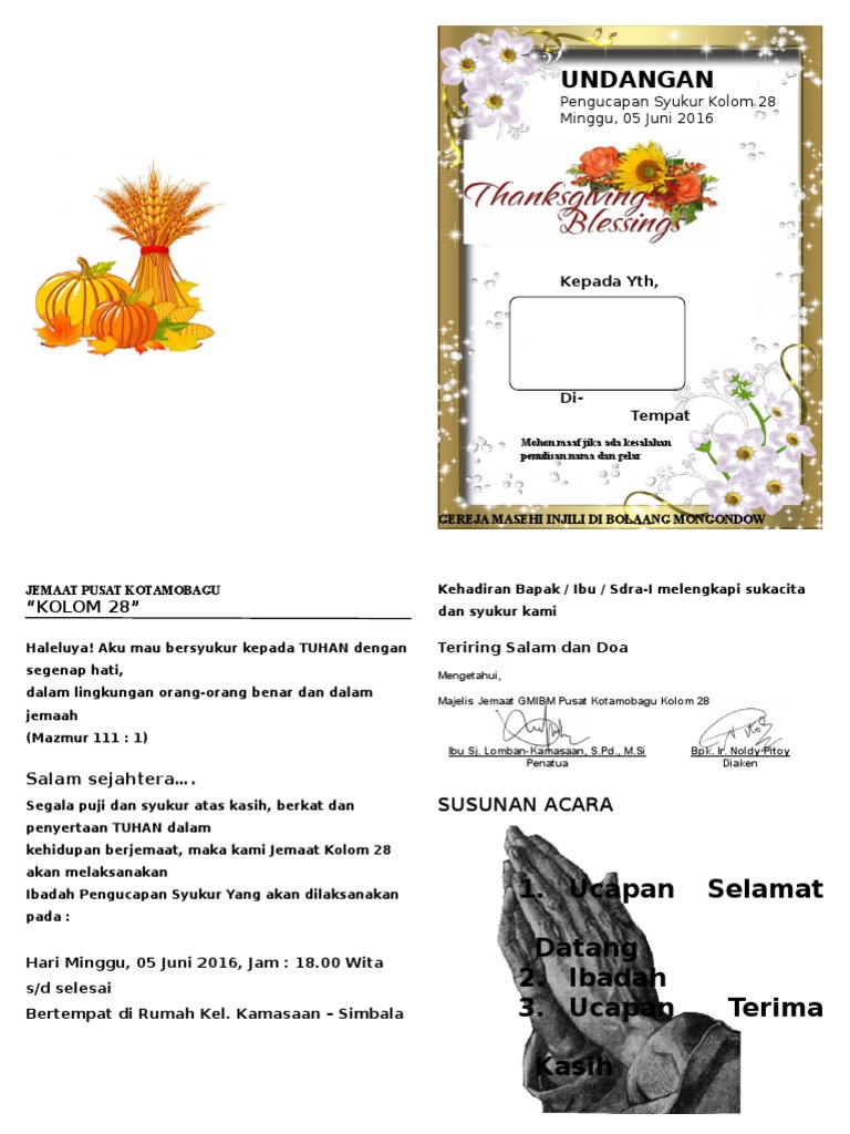 Undangan Pengucapan Syukur Kolom 28