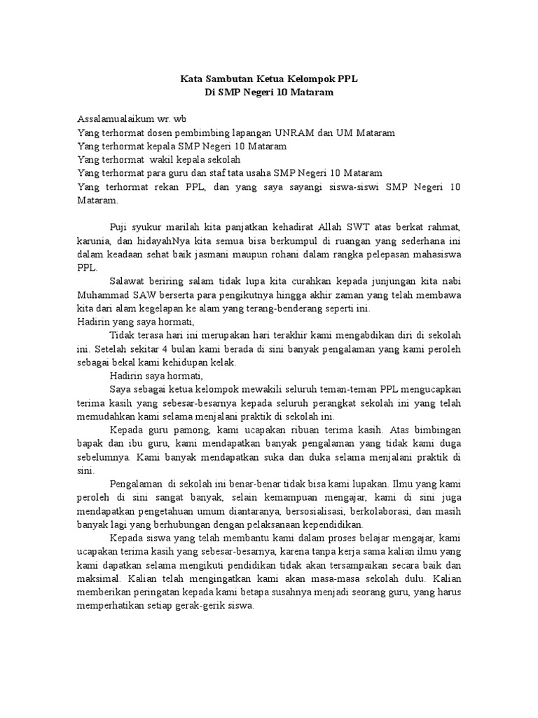 Kata Sambutan Menjadi Ketua Kelompok Ppl