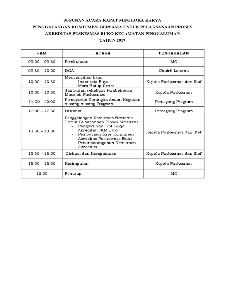 Doc Susunan Acara Pertemuan Lintas Sektor Puskesmas Kayutanam Lili Andriyani Academia Edu