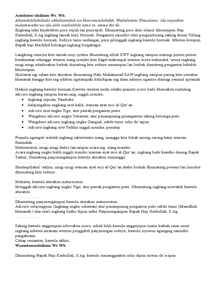 Teks pembawa acara halal bihalal keluarga bahasa jawa. Naskah Bahasa Jawa Pranata Acara Halal Bihalal Kumpulan. Biasanya acara pengajian diadakan untuk mengisi acara seperti pemberangkatan haji bulan rajab muslimat fattayat pengajian rutin setiap minggu dan sebagainya.