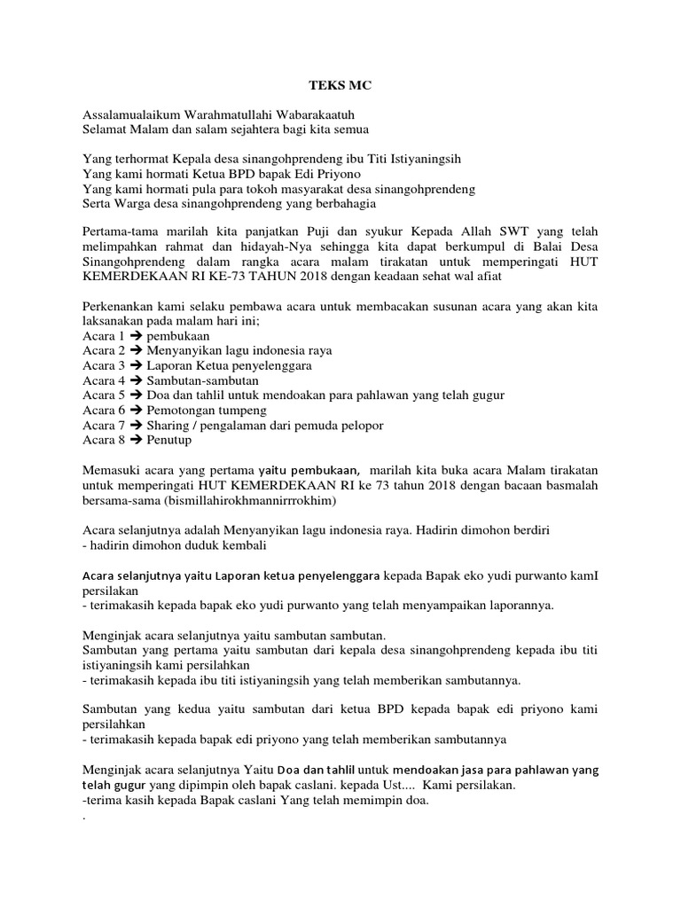 Contoh Naskah Mc Pembawa Acara Tahlilan Bahasa Indonesia Muda Mudi Condrowangsan