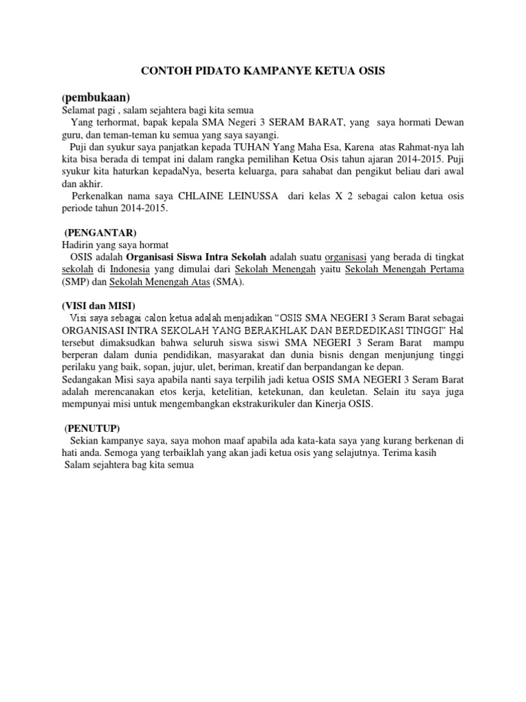 Contoh Pidato Kampanye Ketua Osis Pdf