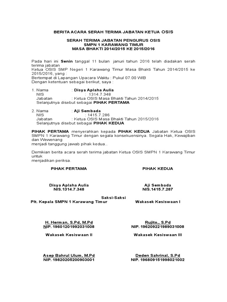 Contoh Surat Berita Acara Serah Terima Jabatan Osis Nusagates