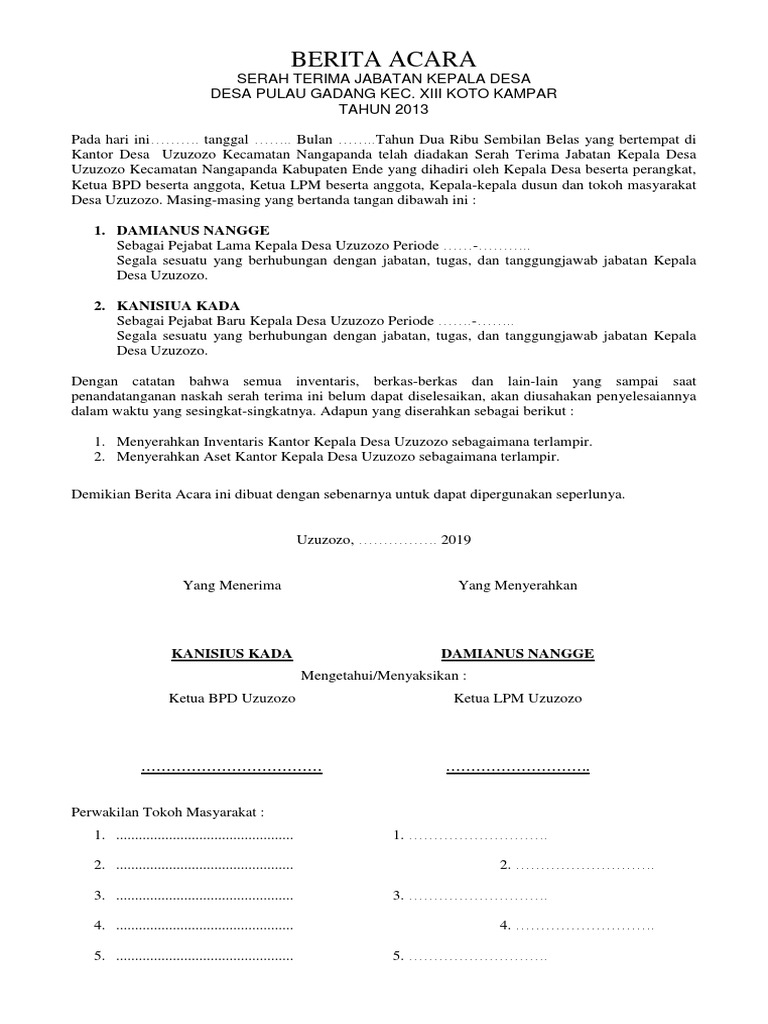 Contoh Format Berita Acara Serah Terima Jabatan Kepala Desa – Ngasal.co