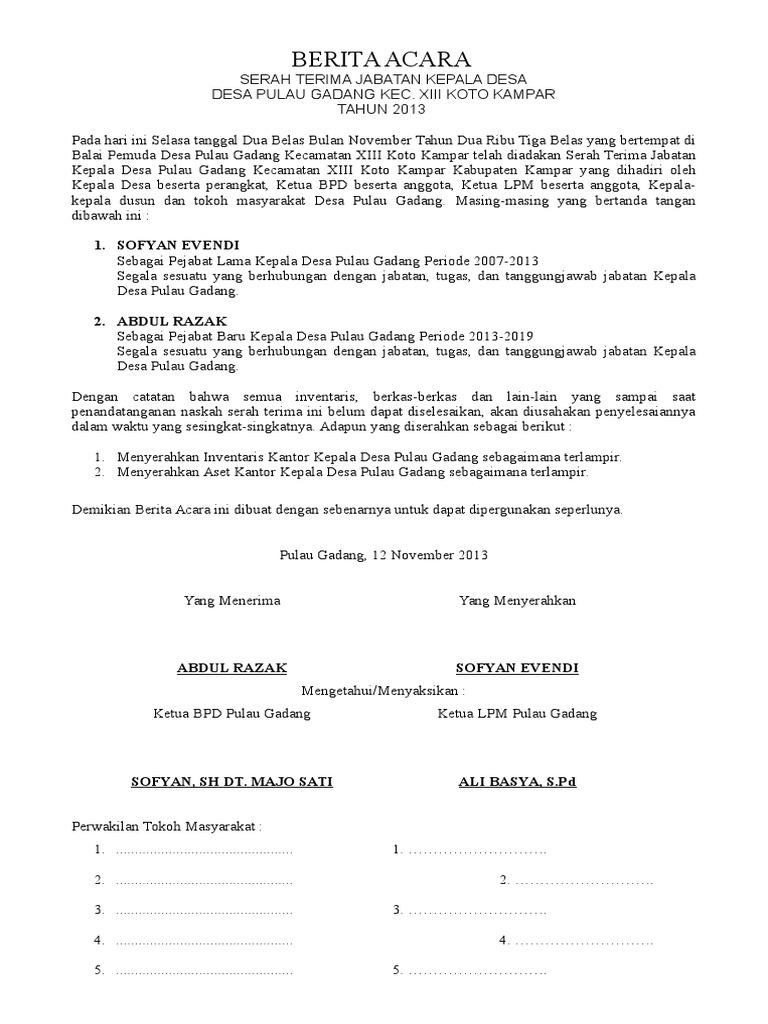 Contoh Berita Acara Serah Terima Jabatan Bpd – Berbagai Contoh