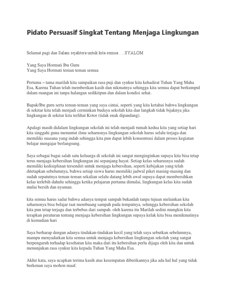 Pidato persuasif terdiri dari undangan. Berikut ini adalah contoh pidato persuasif singkat dengan tema jangan buang sampah. Web Contoh Pidato Jangan Buang Sampah Sembarangan Lengkap.