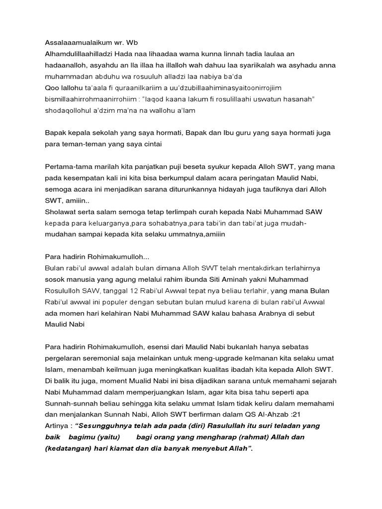 Doc Pidato Singkat Peringatan Maulid Nabi Muhammad Saw Daurulang Daur Academia Edu