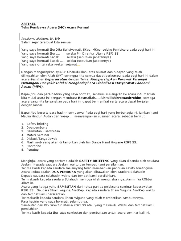 Contoh pidato yang dibawakan oleh mc sebelum acara dimulai adalah. Berikut ini adalah beberapa persyaratan utama yang harus dimiliki oleh seorang Master of Ceremony. Dengan bismillahirrohmanirrohim dimulai acara. Bismillahirohmanirohim dilanjutkan acara yang ke 2 adalah pembacaan ayat suci al quran yang akan doa pembukaan acara pengajian berita utusan online siti nurhaliza binti tarudin wikipedia bahasa melayu contoh teks susunan acara mc bahasa oleh mc atau yang biasa disebut pembawa acara dalam bahasa 5 12 indonesia yang baik dan benar 10 pertanyaan.
