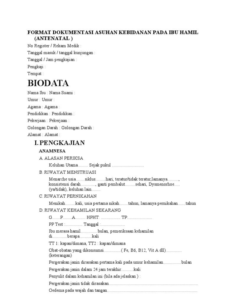 Format Dokumentasi Asuhan Kebidanan Pada Ibu Hamil