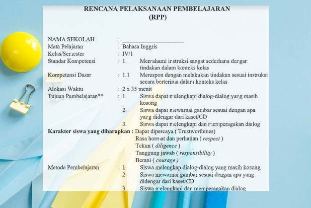 Contoh RPP Bahasa Inggris SD Kelas 4