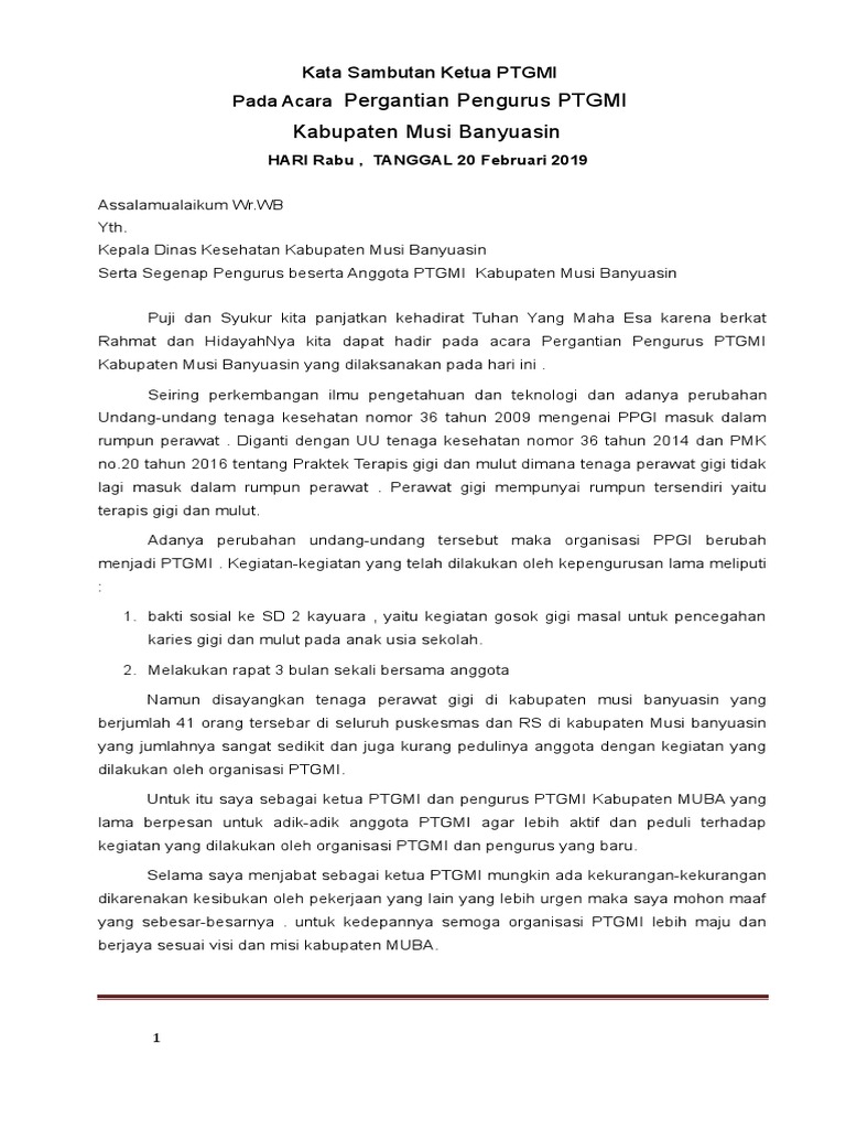 Contoh Kata Sambutan Ketua Organisasi Makalah Pedia