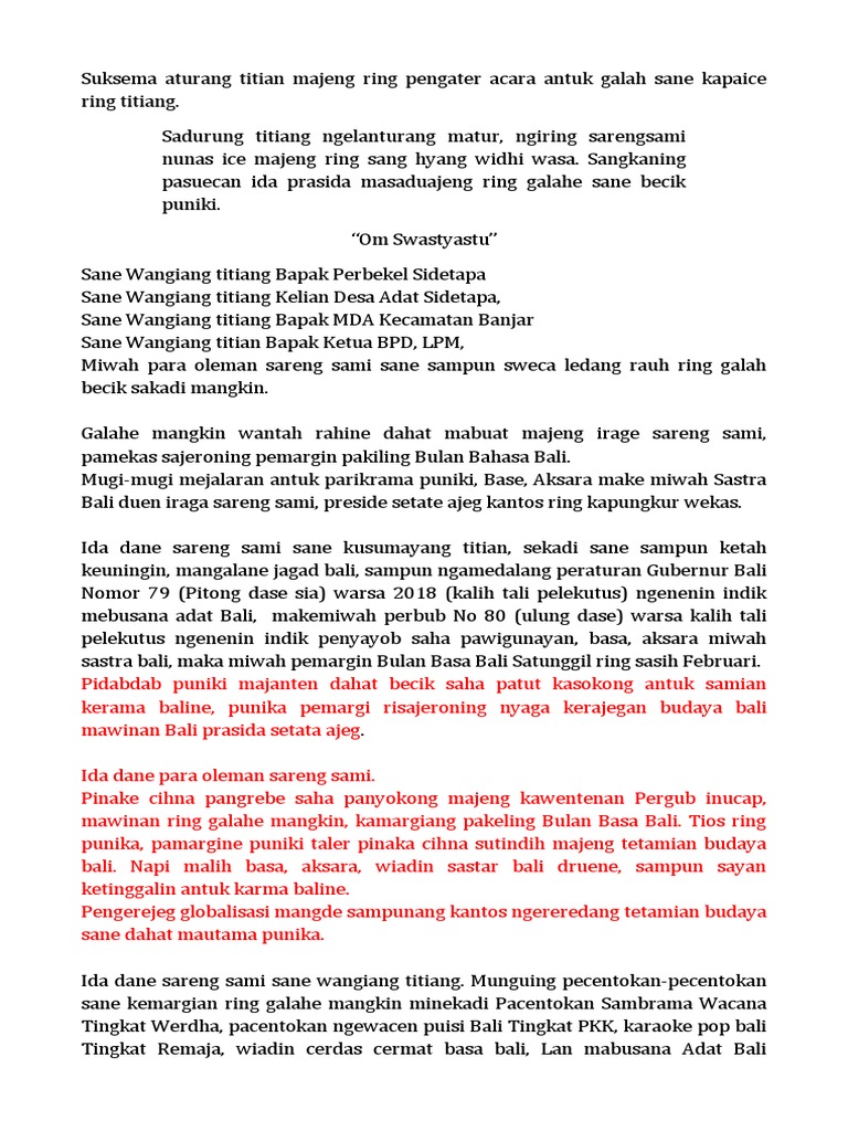 Contoh Pidato Pendek Bahasa Bali Contoh Contoh Pidato Bahasa Bali Contoh Teks Pembawa Acara Mc Americascontohsoal