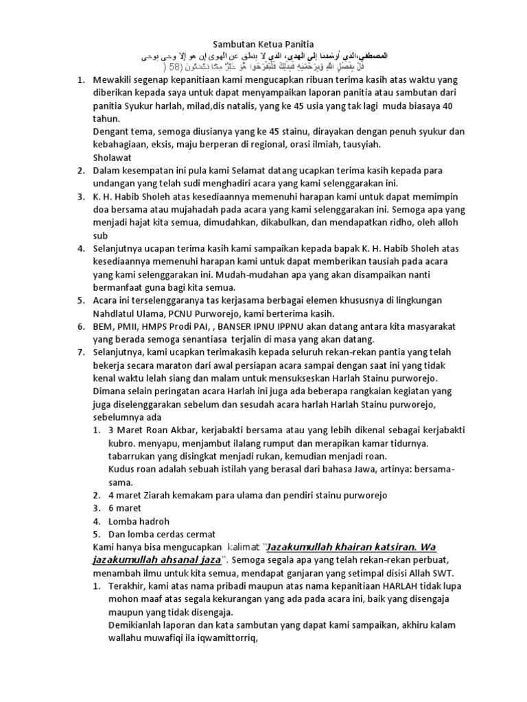 Contoh Pidato Sambutan Ketua Panitia 1 Pdf Document