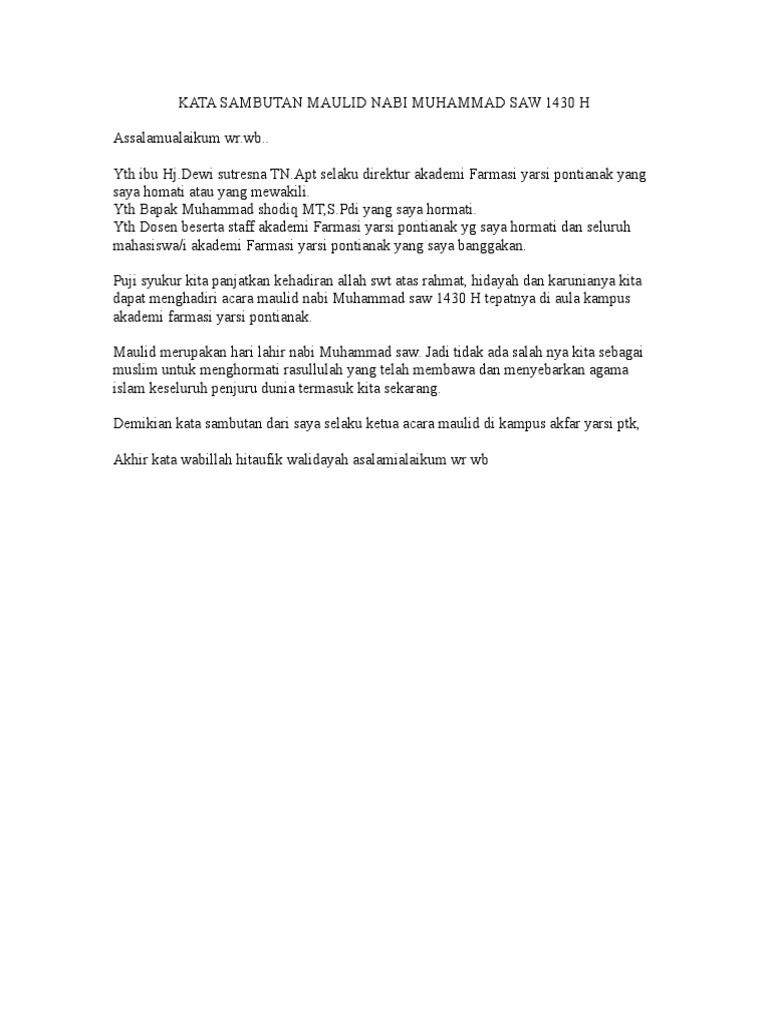 Contoh Sambutan Ketua Panitia Maulid Nabi Berbagai Contoh