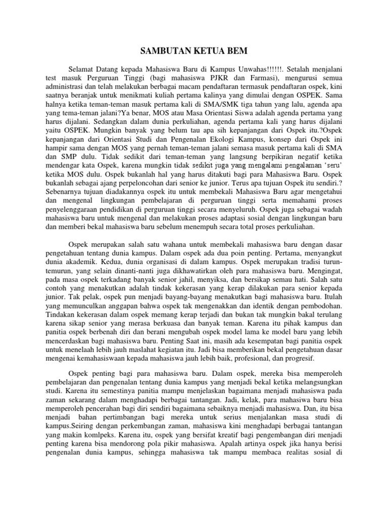 Contoh Kata Sambutan Ketua Pelaksana Ospek