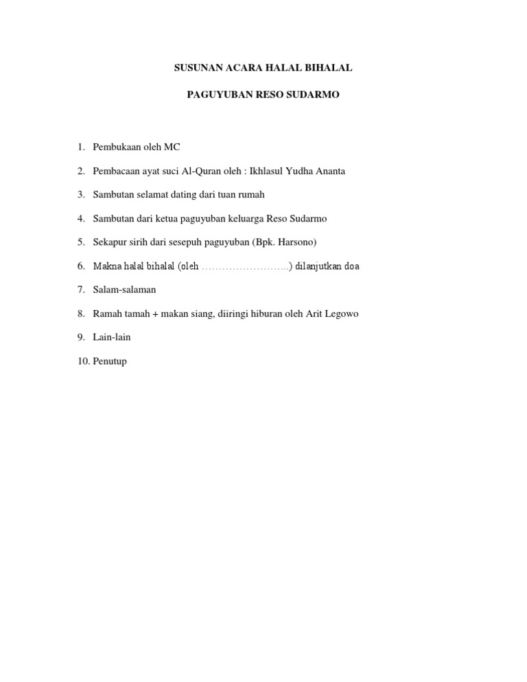 Contoh Susunan Acara Halal Bihalal Rt Kampung Disertai Naskah Mc Yosefpedia Com