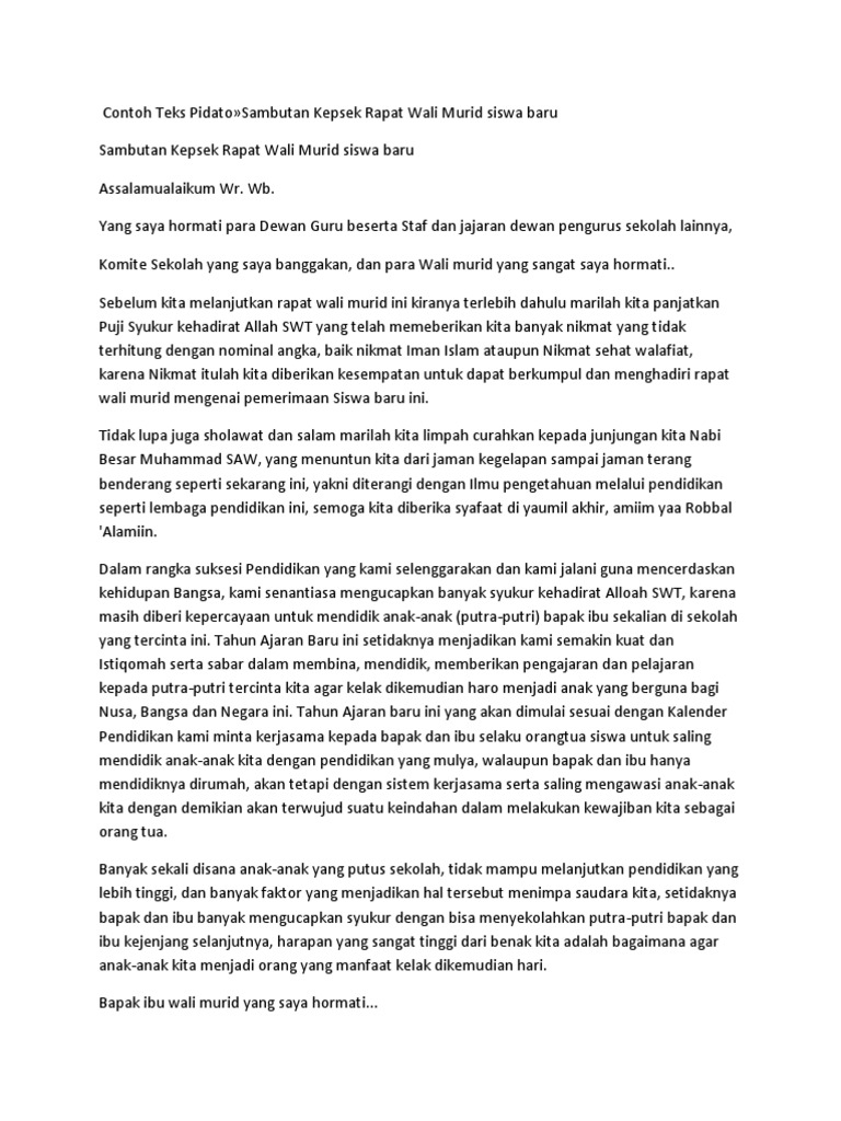 Teks Pidato Sambutan Wali Murid Dan Wali Santri Lengkap Contoh Pidato Terbaik Makalah Pedia