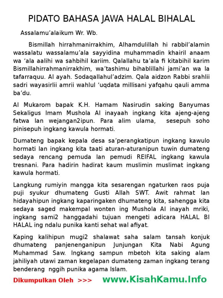 Contoh Pidato Sesorah Halal Bihalal Dalam Bahasa Jawa Mas Jokobek Blog
