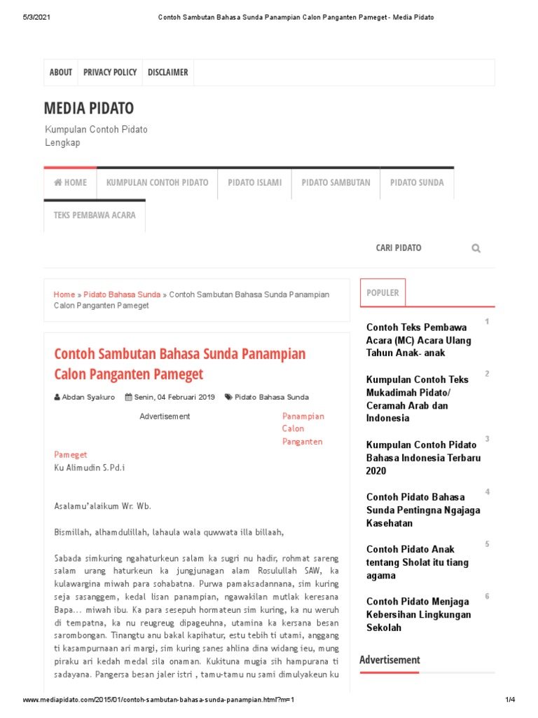 Contoh Sambutan Bahasa Sunda Panampian Calon Panganten Pameget Media Pidato