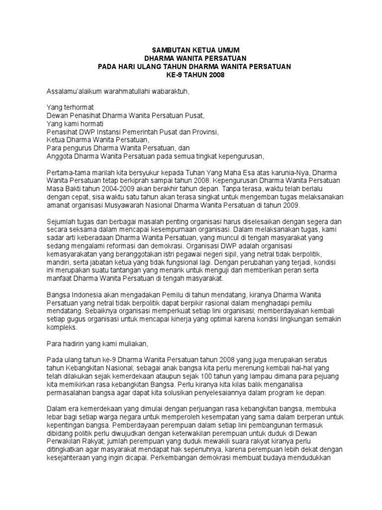 Sambutan Ketua Umum Dwp Hut Ke 94
