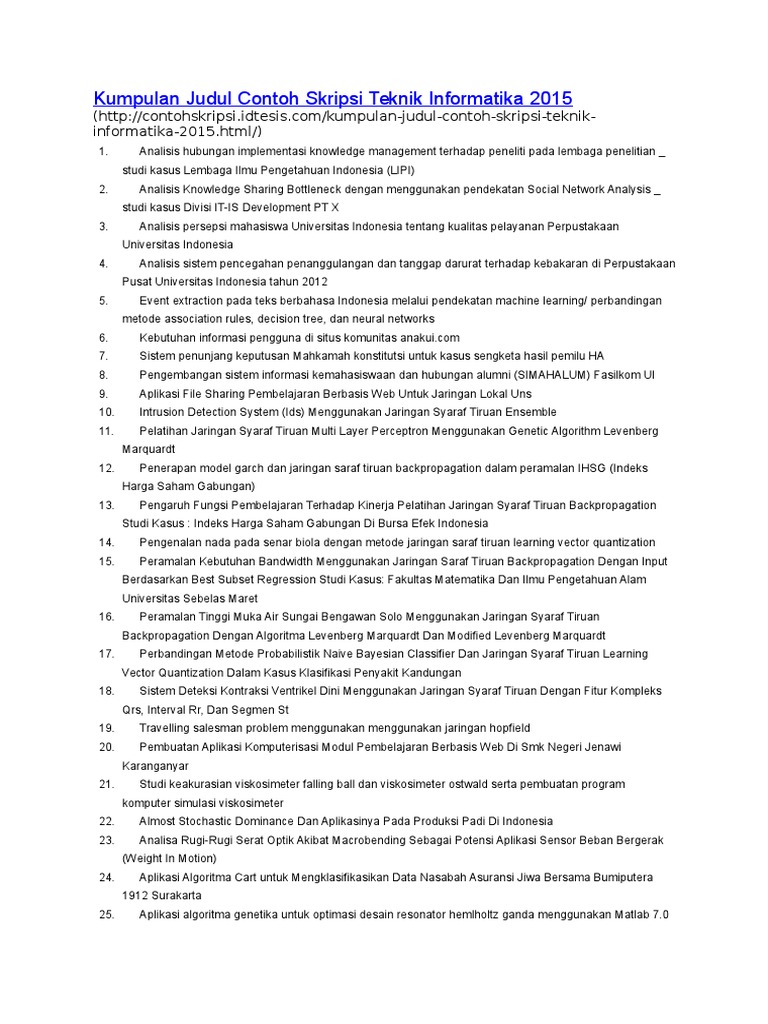 Web Daftar Isi 1 Download 101 Contoh Skripsi Teknik Informatika Pdf Dan Tips Membuat Judul Skripsi. Web Kumpulan Judul Contoh Skripsi Teknik Informatika 2015 Internet merupakan suatu media informasi yang berjalan dalam suatu komputer. Web Kumpulan Judul Contoh Skripsi Teknik Informatika 2015 Internet merupakan suatu media informasi yang berjalan dalam suatu komputer.