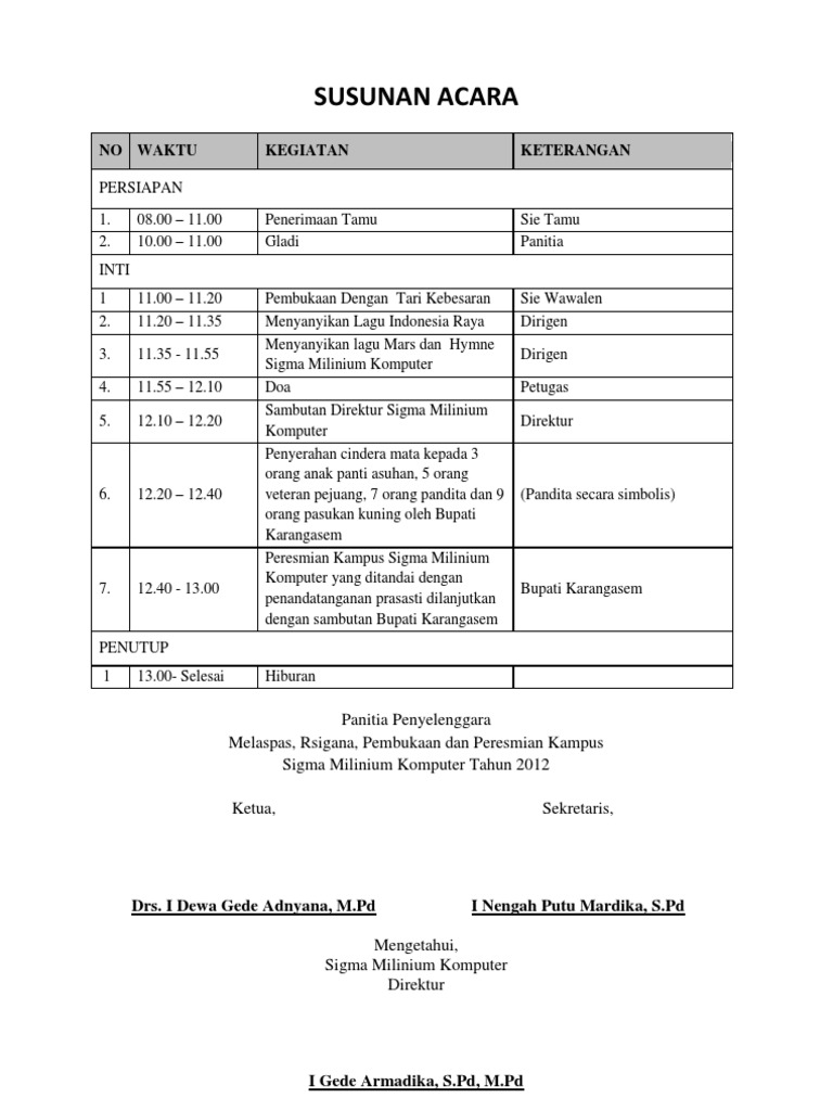 Web keikhlasan serta kecerdasan dan kearifan dalam mengikuti Sosialisasi ini. Web Contoh Susunan Acara Definisi dari pada susunan acara sendiri memiliki pengertian yakni merupakan suatu rangkaian dari suatu program yang sudah dirinci. Kumpulan teks mc acara.