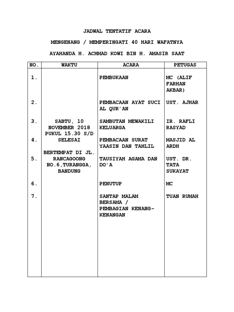 Contoh Jadwal Acara Tahlilan Communication