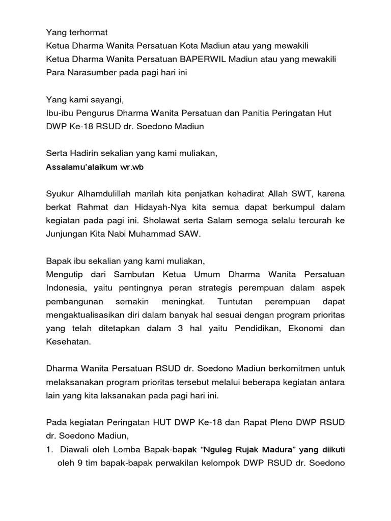Contoh Sambutan Ketua Dharma Wanita | PDF