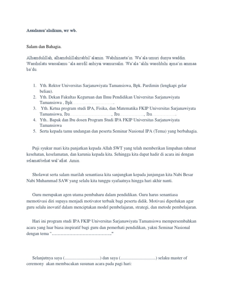 Contoh teks mc seminar online. Dengan mengucap syukur kepada Tuhan. Unduh mp3 baru Contoh Teks Mc Singkat Contoh Teks Pembawa Acara Pengajian Yang Sederhana dan mudah dipahami Mas Dori 0413 PT4M13S 579 MB. Pada umumnya seminar menampilkan satu atau beberapa pembicaraan dengan makalah atau kertas kerja yang sebelumnya sudah di persiapkan.