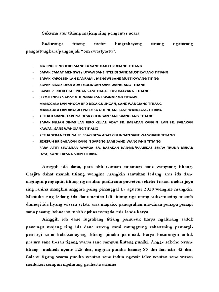Pidato Ketua Seka Truna Dalam Basa Bali Pdf