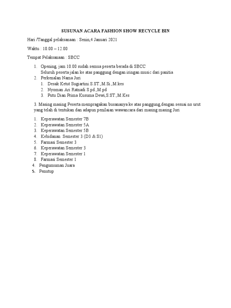 Susunan Acara Fashion Show Recycle Bin Pdf