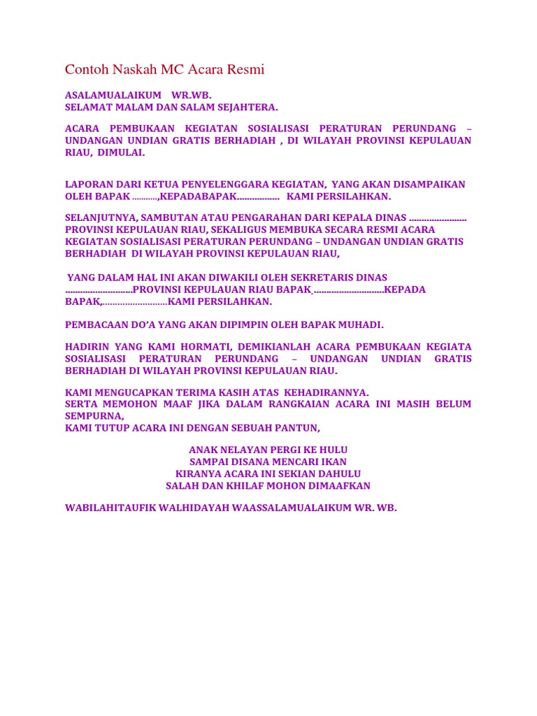 Kumpulan Teks Mc Non Formal 12 Contoh Terbaik Makalah Pedia