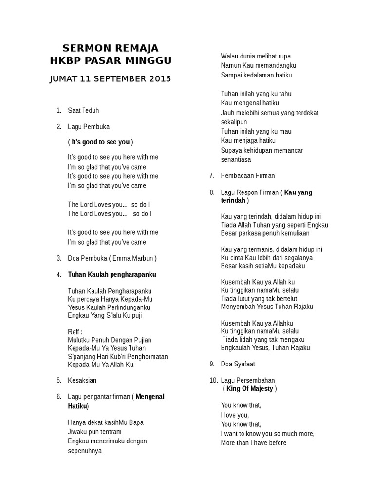 Kelahiran anak merupakan momen penting yang biasanya disambut dengan acara syukuran. Lagu Lagu Daerah Sangihe Siau dan Talaud 4. Contoh kata pembukaan ibadah kristen di gereja pujian kristus.