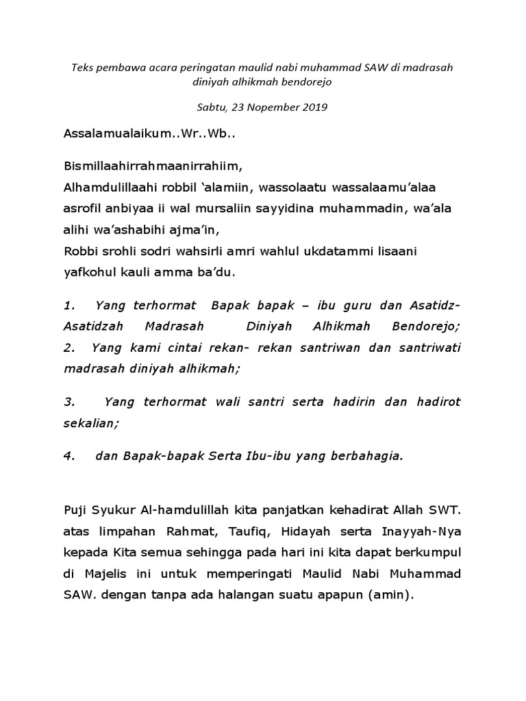 Doc Teks Mc Maulid Nabi Devi Rahmawati Academia Edu